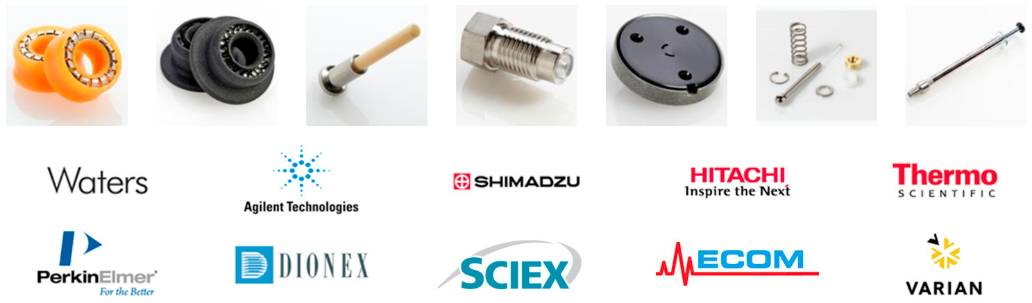 V našej ponuke je veľký sortiment náhradných dielov a spotrebného materiálu pre prístroje takmer všetkých svetových LC producentov (napr. PM kity, tesnenia piestov, piesty, vstupné a výstupné ventily, tesnenia rotoru manuálnych aj automatických dávkovačov, striekačky, ihly, D2/Xe/VIS lampy do detektorov a spektrofotometrov a pod.)..